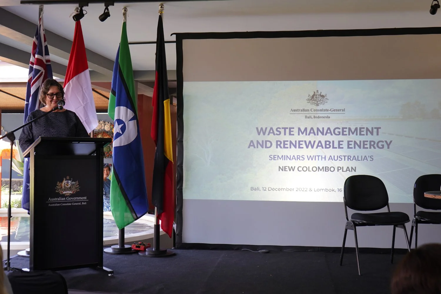 Konsulat-Jenderal Australia di Bali menyelenggarakanseminar bersama sejumlah pengajar dan mahasiswa yang tergabung dalam Program Mobilitas New Colombo Plan (NCP) dari Universitas Murdoch, Australia. Seminar bertema Pengelolaan Sampah dan Energi Baru Terbarukan ini ditujukan untuk berbagi ide, mendorong pemikiran baru dan kreatif, memamerkan solusi lokal, dan membangun kemitraan untuk mengatasi tantangan pengelolaan sampah dan energi baru terbarukan di Australia dan Indonesia.