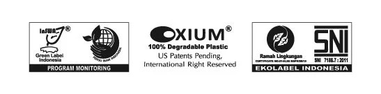 One form of commitment in carrying out the Monitoring Programme is to assign labels to plastics that have used Oxium technology. The use of labels that have been set must also be controlled, following the applicable laws and rules of the game. The labels that have been determined are, each converter must include three logos, namely the SNI Ecolabel 1 Logo, the licensed Oxium Logo and the NGO Logo (YPBI and InSWA) as attached below: